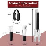 Ovaj 4-u-1 set uključuje otvarač s pumpom na zrak, rezač folije, aerator i vakuumski čep za besprijekorno vinsko iskustvo.