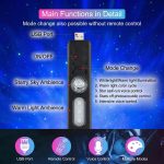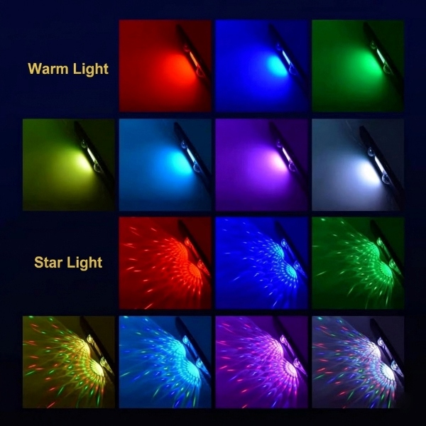 Načini osvjetljenja: topla bijela, topla + višebojni ciklus, zvijezde + kontrola zvuka, statične zvijezde, visokointenzivni zvučni stroboskop