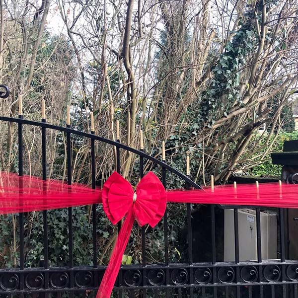Ukrasite svoja vrata s našom luksuznom ukrasnom mašnom. S vrpcom dugom 750 cm možete oblikovati i dodati prekrasan svečani makeover svojim ulaznim vratima. Bilo da je u pitanju Božić, vjenčanje ili proslava rođenja djeteta, RUBYBOW uljepšava slavlje.