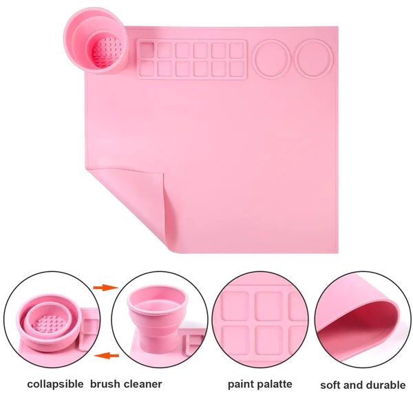 Naša prva prostirka s ugrađenom sklopivom čašicom za čišćenje kistova. Posuda je dizajnirana za držanje vode i čišćenje kistova.