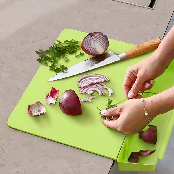 Održavajte svoju kuhinju urednom i učinkovitom! 🍅🍴 Odvojivi spremnik ove daske za rezanje hvata sve vaše nasjeckane sastojke, čineći pripremu obroka lakom i štedi vrijeme čišćenja. 🧽✨ Recite zbogom neredu na pultu!