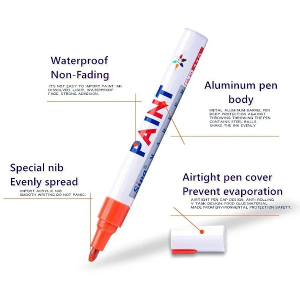 Samo protresite marker, pritisnite i prekrijte ogrebotine ili stvorite jedinstvene dizajne na svojim gumama.