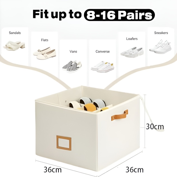 Organizator obuće SHOVERA dizajniran je za 8-16 pari cipela, uključujući sandale, papuče i tenisice, u kompaktnoj veličini 36x36x30 cm. Njegov sklopivi dizajn omogućuje jednostavno spremanje kada se ne koristi, što ga čini idealnim za domove, studentske sobe i sezonsku obuću.