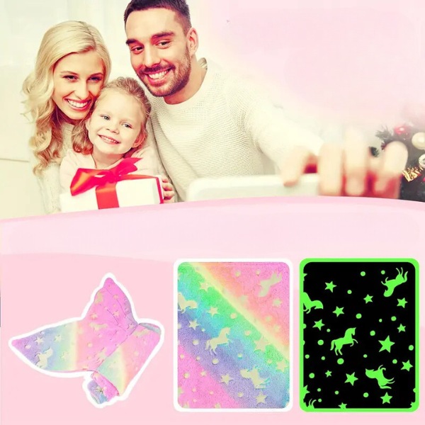 Pokrivač MERMAIDREAM svijetli u mraku, pružajući umirujuće svjetlo koje ublažava noćne strahove. Jednostavno ga izložite dnevnom svjetlu 20 minuta i nježno će svijetliti cijelu noć. Odaberite dizajn repa morskog psa ili repa sirene za dodatnu magiju dok vaše dijete spava.