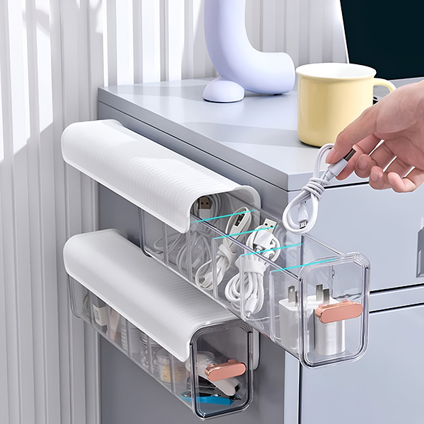 ORGABIN-ove uklonjive pregrade omogućuju vam stvaranje većih ili manjih pretinaca, ovisno o vašim potrebama. Bilo da se radi o glomaznim dodacima ili sićušnim kablovima, prozirni i izdržljivi PET materijal osigurava da su vaši predmeti uredno pohranjeni i da ostanu vidljivi u svakom trenutku.