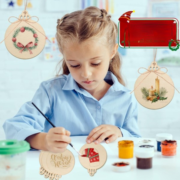 Preobrazite svoj blagdanski dekor s 30 vrhunskih, unaprijed izbušenih drvenih diskova, savršenih za izradu personaliziranih ukrasa koji vašem božićnom drvcu dodaju rustikalni šarm.