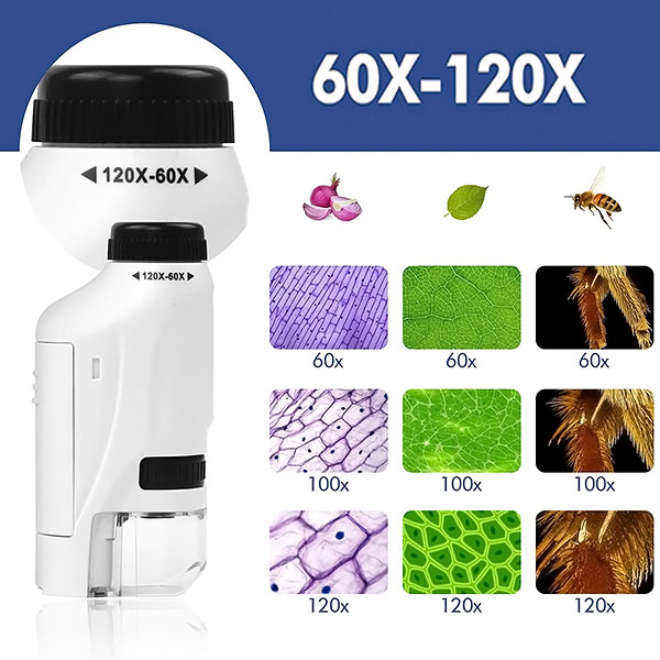 Opremljen s LED rasvjetom i povećanjem od 60x-120x, djeca mogu otkrivati fascinantan mikroskopski svijet danju ili noću. Jasne i oštre slike drže ih angažiranima i željnima da nauče više.