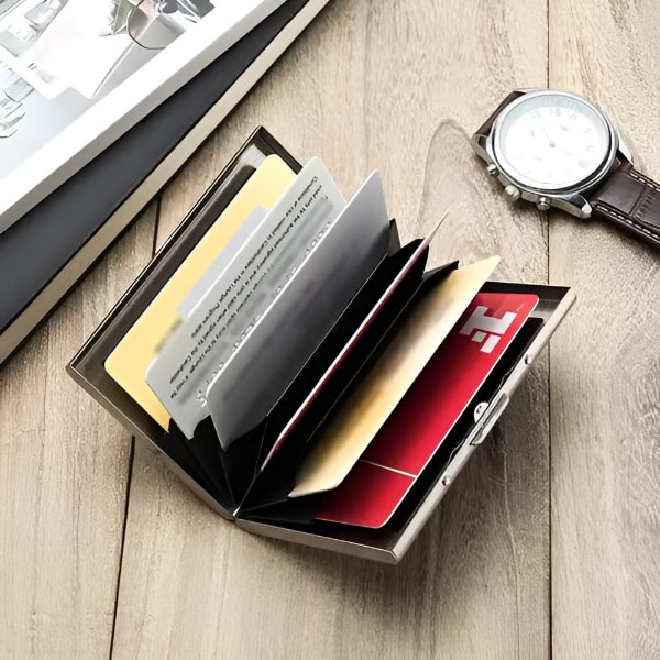 Izrađen od visokokvalitetnog nehrđajućeg čelika, ovaj novčanik je izdržljiviji i dugotrajniji od plastičnih ili aluminijskih opcija, nudeći vrhunsku zaštitu za vaše kartice.
