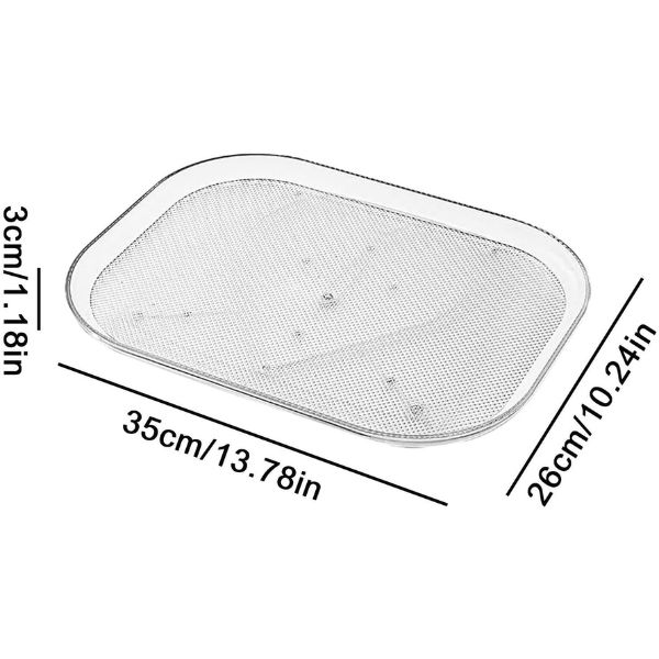 Držite svoj hladnjak urednim uz našu prozirnu pravokutnu ladicu za hladnjak. Ovaj organizator za hladnjak koji se rotira za 360° savršen je za jednostavan pristup i maksimalno korištenje prostora. Jednostavan je za čišćenje, ima protuklizne usisne čašice i ne zahtijeva instalaciju.