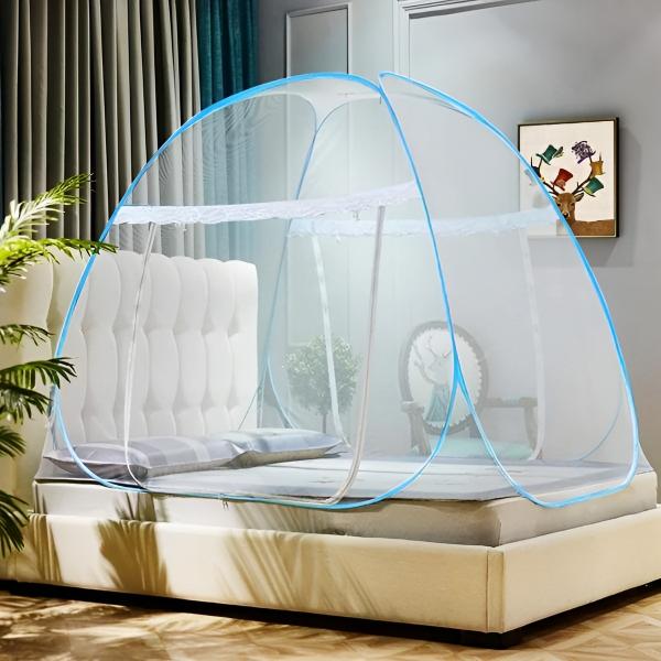 200 x 180 x 145 cm pokriva standardni bračni krevet s punom visinom za stajanje unutra – dovoljno veliko za dvoje odraslih ili roditelja i dijete. Koristite ga iznad jednostrukog kreveta, dječjeg krevetića, podloge za kampiranje ili vrtne ležaljke. Sklopivi okvir pakira se dovoljno malo da stane u kofer, pa zaštita putuje s vama u apartmane, kampove i hotelske sobe s terasom.