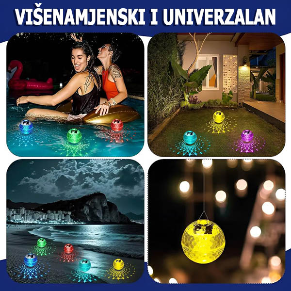 Nije samo za bazene! Postavite je bilo gdje – na balkon, blizu biljaka ili unutar dekorativne zdjele. Ovo svestrano solarno svjetlo prilagođava se svakom prostoru, donoseći ugodan, elegantan dodir vašem domu.
