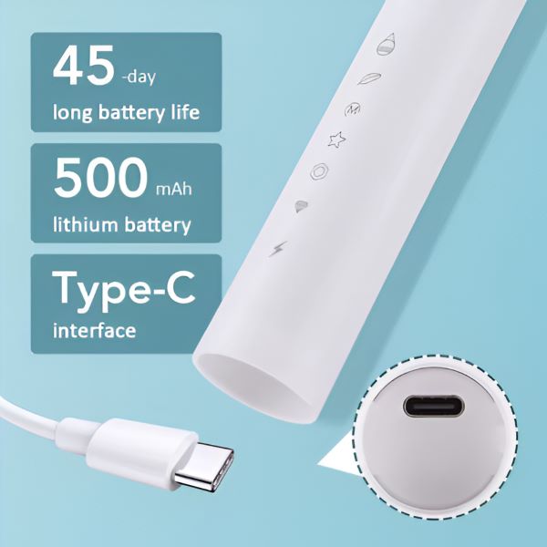 📏 21 x 2.5 cm, 6 načina čišćenja – uključene bijela i crna, USB kabel za punjenje i korisnički priručnik