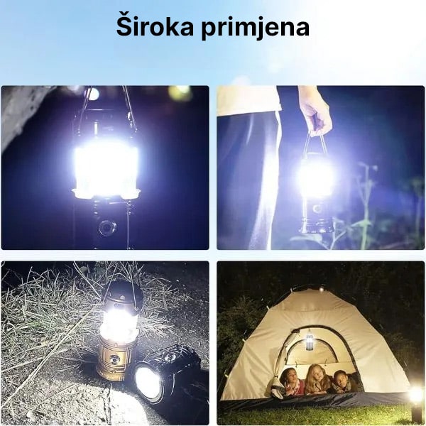 Ova nevjerojatna svjetiljka pogodna je za širok raspon aktivnosti. Koristite ga dok pecate, planinarite, lovite ili se jednostavno opuštate u svom vrtu. Čvrsta ručka svjetiljke omogućuje vam da je objesite bilo gdje, pružajući rasvjetu bez ruku. Njegov kompaktni i lagani dizajn osigurava jednostavno nošenje i spremanje, što ga čini savršenim za sve vaše avanture na otvorenom i u zatvorenom prostoru.
