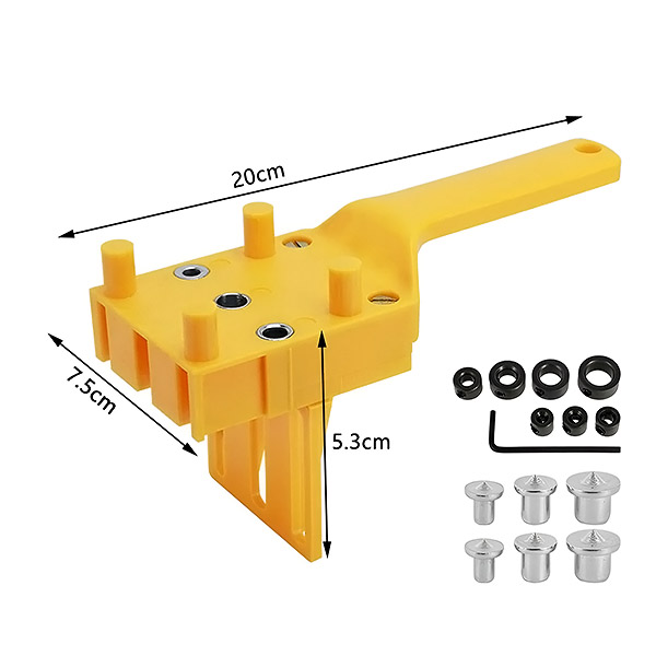 📦 Komplet uključuje: šablonu + 6 centrirnih točaka + 7 graničnika dubine + ključ