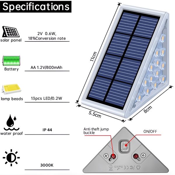 Uživajte u 6-8 sati tople bijele svjetlosti nakon samo 4-5 sati punjenja. Savršeno za poboljšanje sigurnosti i ambijenta u vašem vrtu ili na stazama.